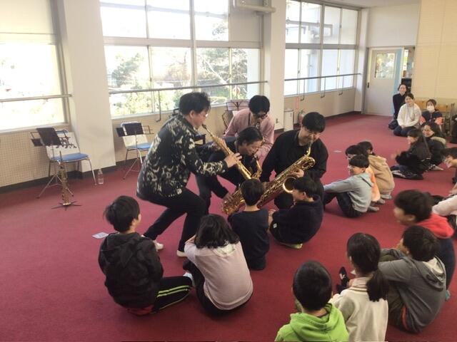 金曜日に荒尾総合文化センター主催の音楽アウトリーチ事業がありました。モデトロ・サクソフォン・アンサンブルの4名の方の演奏を、3年生以上が生で体験させていただきました。子どもたちは素晴らしい演奏に夢中になっていました。素晴らしい機会をくださった文化センターのみなさん、モデトロのみなさん、そして関係者のみなさんに心からお礼申し上げます!