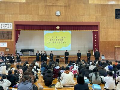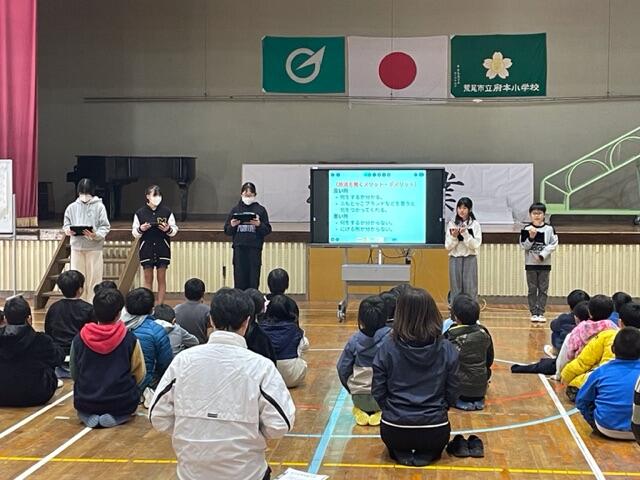火曜日のお昼に児童集会がありました。今回は、放送委員会の発表でした。クイズを交えて放送委員会の仕事をみんなに伝えてくれました。寒い日でしたが子どもたちは一生懸命発表を聞き、感想発表では低学年の子どももたくさん手をあげてくれました。しっかり話を聞いて感想を返す素敵な子どもたちです!