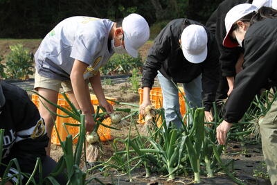 本物体験として野菜づくりを体験していた6年生が、今年度最後の収穫作業を行いました。玉ねぎとネギです。醜悪後の振り返りでは、感謝の気持ちと自分でも野菜づくりにチャレンジしたいということなどを発表していました。