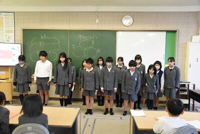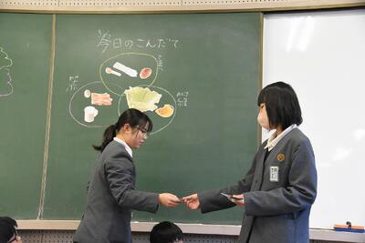 給食週間にちなみ、二見小委員会のみなさんが、給食についての発表を行いました。