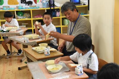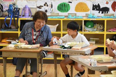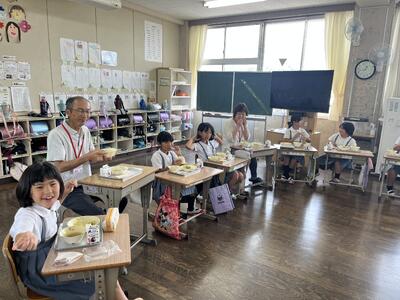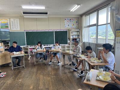 各学級自己紹介をしたり、地域の話をしながら楽しく給食を食べました。