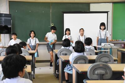 まず始めに、各学級の代表の子供たちが、1学期の反省を発表しました。