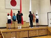 校長先生から団旗を授与され、小・中各団長が、決意を団員に伝えました。
