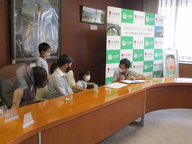 市長室で「歯と口の健康週間 図画ポスターコンクール」の表彰式がありました