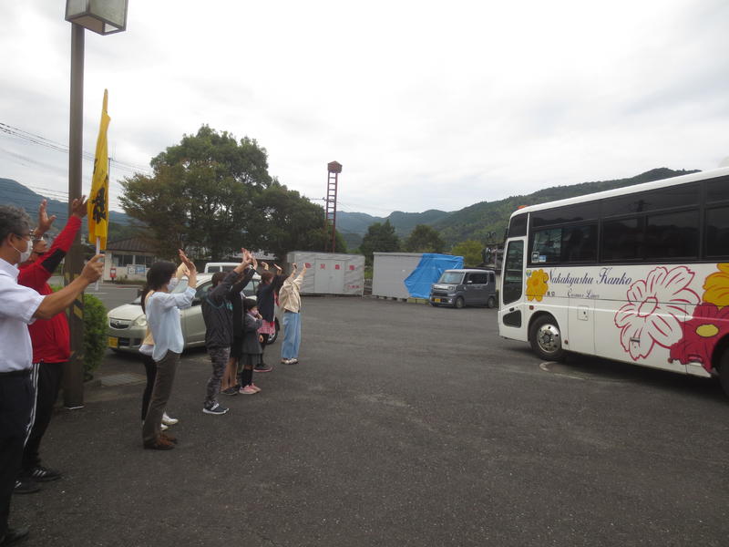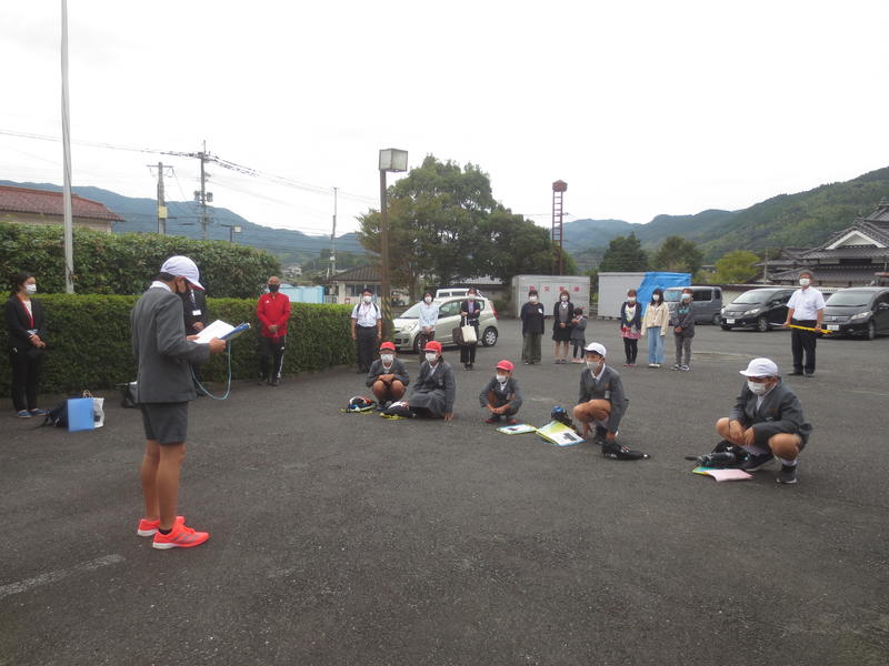 二見コミュニティセンターで保護者に見守られ、出発式を行いました