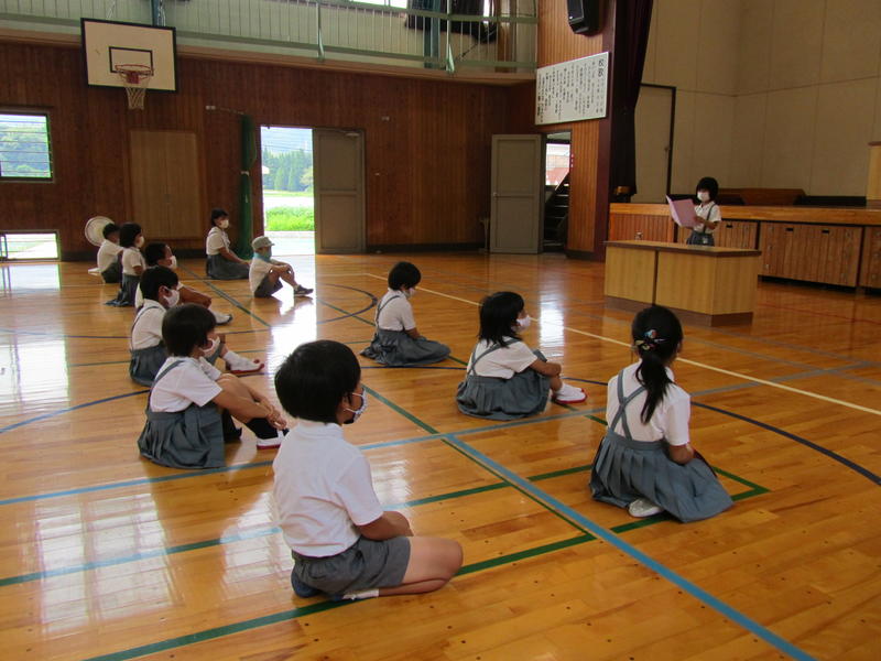 低中高代表の児童が、1学期のふり返りを発表しました