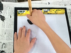 毛筆の一コマです。ていねいにていねいに筆を運んでいる様子が見られました。