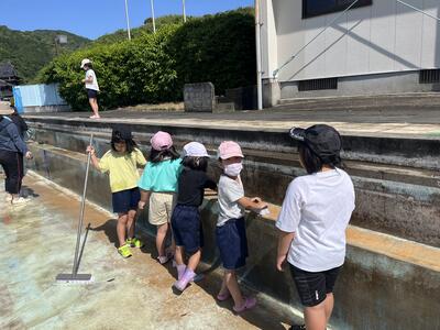 保護者の皆様の力で、1年間使っていないプールがみるみるうちにきれいになりました。