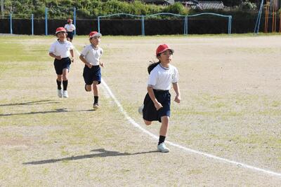 いつもより抑えてスタートした3.4年生。いつもと同じペースで