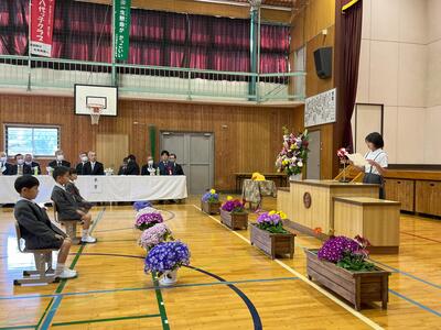 多くの来賓の方々が、お祝いしてくださる中、元気に返事ができました。