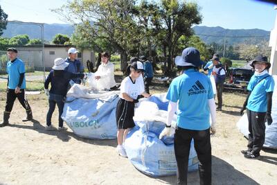 8月24日美化作業の後、小中合同で二見校区の資源回収を行いました。