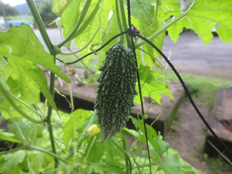 ツルレイシがきれいな花を咲かせ