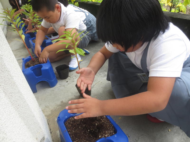 その間、各学年では中庭の花壇に花の苗を植えました