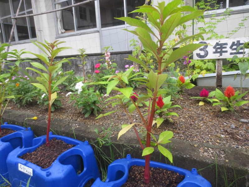 先日、理科支援員の先生から立派に育ったホウセンカの苗をいただきました