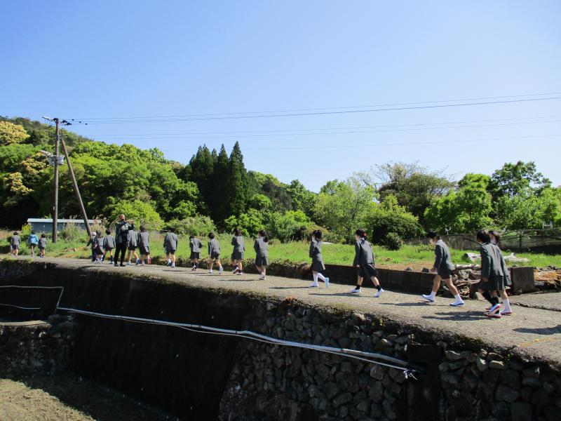 校長先生の話を聞いた後、早速「二見自然の森」へ出発です!