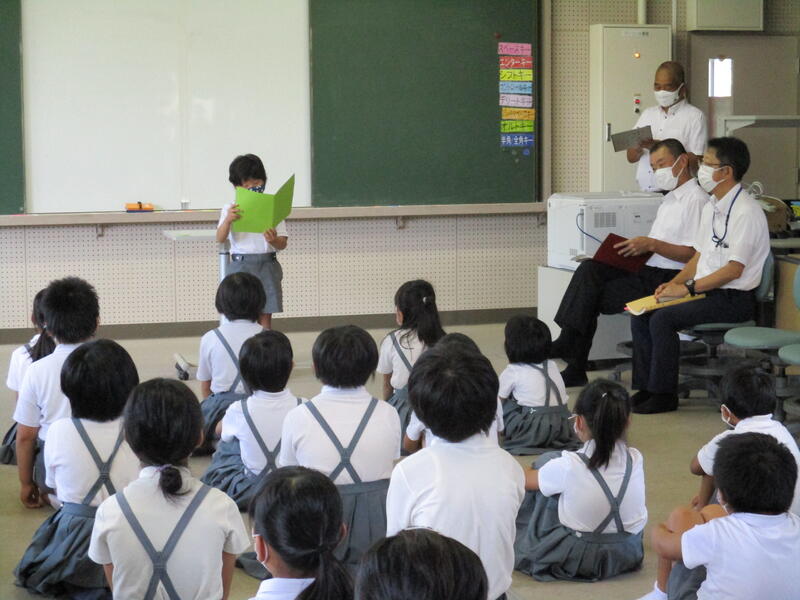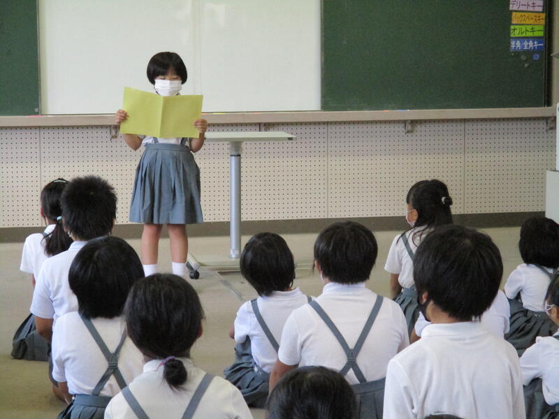 各学級の代表児童が、1学期のふり返りの作文を発表しました。