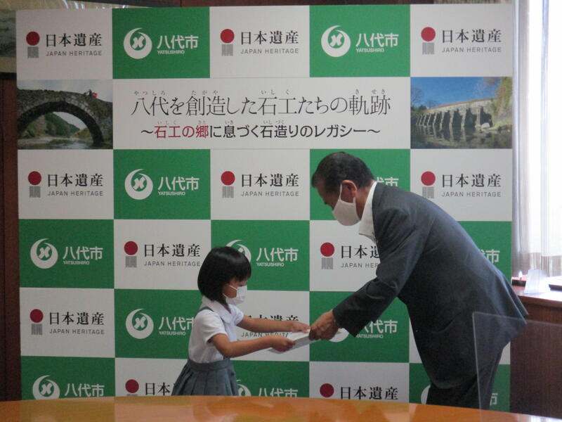 本校1年生の籔いちかさんが、「八代市賞」に選ばれ、表彰されました