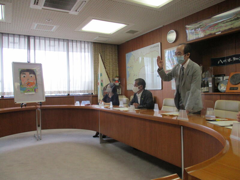 市長室で「歯と口の健康週間 図画ポスターコンクール」の表彰式がありました