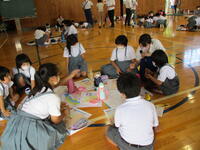 子どもたちは、早田さんの話を真剣に聞いて、グループワークではそれを生かして、自分の考えを書いたり発表したりしていました。1年生から6年生まで活発に話し合い、グループの考えをまとめており、防災に対する意識の高まりを感じました。