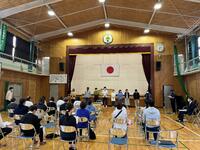5月14日の小中合同運動会に向けて、4月28日、小中合同で運動会の結団式がありました。