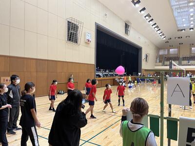 楽しくバレーを行っていました。