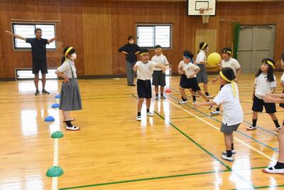 二見小の子どもたちは、全校児童仲がよく、高学年が、低学年に