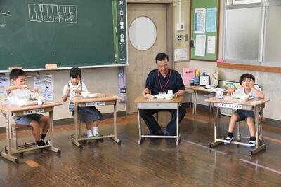 7月2日 二見校区の民生委員さんと一緒に給食を食べました。