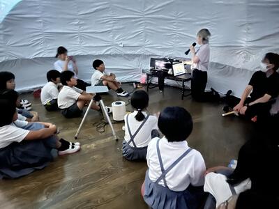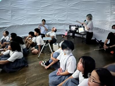 これは八竜天文台の学芸員さんが、学校に張ったドーム型のテントの中で、