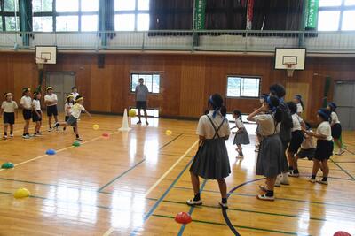 雨が続いていたので、子供たちは、体育館でみんなで遊ぶことを