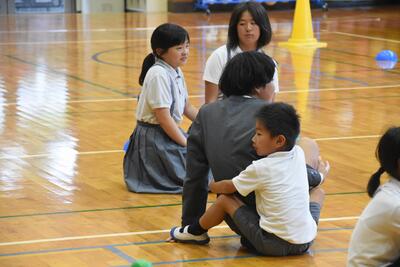 二見小は、高学年が、低学年の子どもたち中心に遊びます。