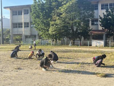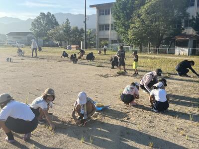 本校は児童数が少ないので、運動場の除草作業が難しいですが、地域の市政協力員の皆様や、