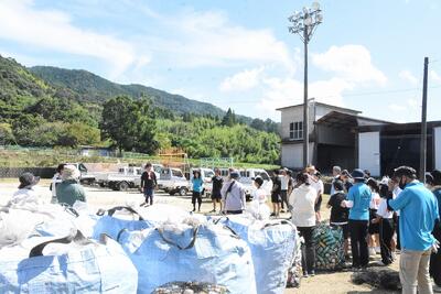 8月24日美化作業の後、小中合同で二見校区の資源回収を行いました。