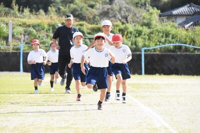 いつもより抑えてスタートした3.4年生。いつもと同じペースで