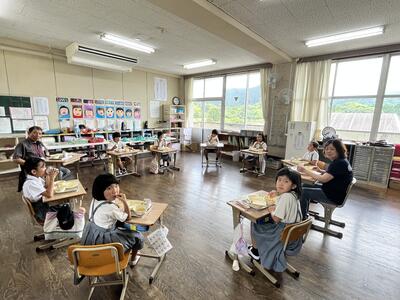 7月2日 二見校区の民生委員さんと一緒に給食を食べました。