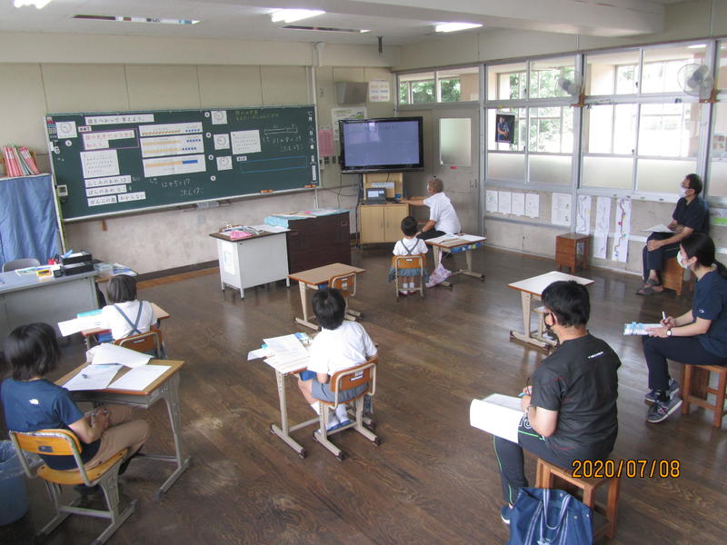 5校時の中学年、6校時の高学年は、体育館で学習することになりました