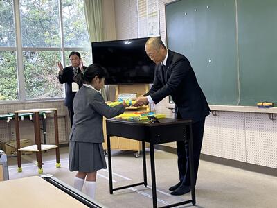 教室では、保護者に感謝を伝えたり、5年生からプレゼントを渡したりして、