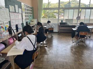 今日、本校では地震・津波避難訓練を実施しました。悪天候が予想されたため、各クラスでの防災学習を実施しました。1年生も真剣なまなざしでスクリーンを観て、防災への知識を深めたところです。