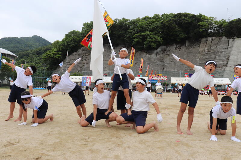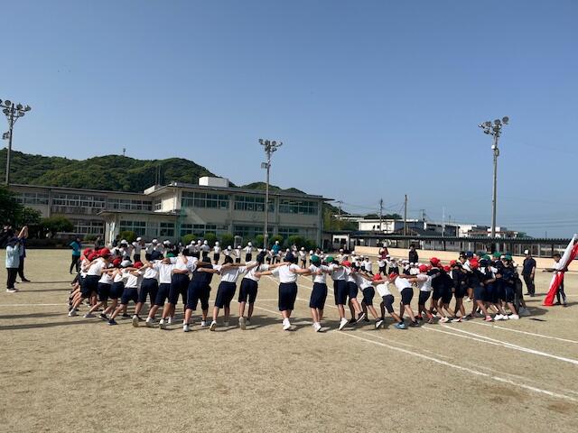 今日は運動会へ向けて、全校児童による全体練習がありました。朝からのライン引き、放送準備、草引き、応援団練習、それぞれの持ち場で責任を果たしてくれる児童、職員で運動会を創りあげています。チーム御所浦小、みんなが関わり頑張っているところです。連休明けの5月8日(木)は、中学校との合同練習があります。いよいよ小中連携のスタートです。