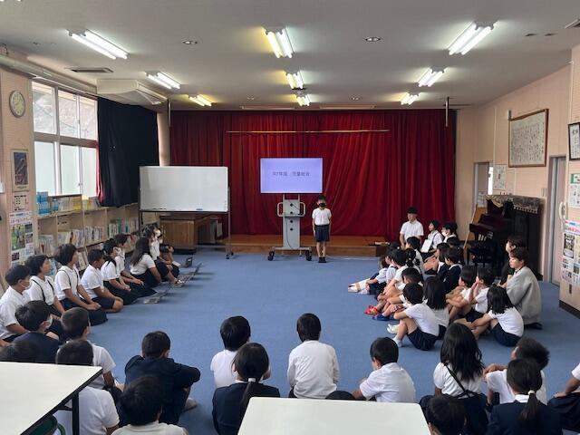 今日、児童総会を実施しました。各委員会からの活動計画発表後、各学級からのクラス目標の発表がありました。全校児童でそれぞれの活動や目標を共有し、今後の意欲を高め合いました。