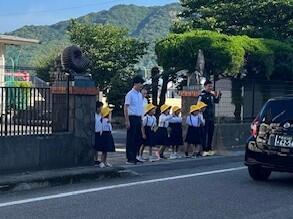 児童の登校時、たくさんの交通指導の皆様から見守られながら、令和7年度御所浦小学校が始動しました