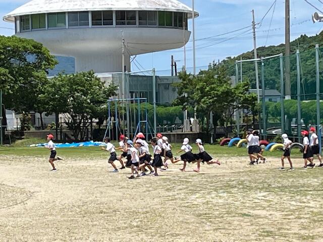 今日は、体育委員会企画による全校遊び(全校鬼ごっこ)でした。梅雨に入り室内で過ごすことが増えていましたが、今日は、好天に恵まれ運動場に活気が戻っていました。子どもたちが、汗びっしょりかきながら走り回る姿はいいですね。※しかし、今日は熱中症指数が上がり、途中に休憩・給水を入れての全校遊びとなりました。