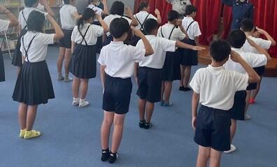 本日は、不審者対応避難訓練でした。駐在所の川越様ご指導のもと、不審人物への対応、児童の避難、職員訓練を実施しました。真剣な眼差しで話を聞く子どもたちの姿がよかったです。児童も職員も危機管理の意識を高めることができました。地域も本校も支えてくださる川越様に感謝しかありません。