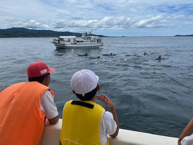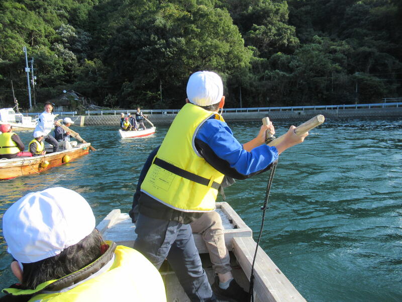 4年生は、勇志国際高校近くの入り江で伝馬船の体験を行いました。地域の方々のご協力をいただきながら、全員が艪をこいで舟を進める貴重な経験をしました。風が吹く中での操縦は容易ではなく、悪戦苦闘しながらも和船ならではの操船を体感することができました。 ※伝馬船(てんません)とは、日本で使われた木造の小型和船で、本船と岸の間で荷物や人を運ぶために用いられた船です。