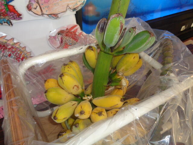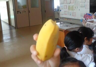 本日、地域の方からバナナをいただきました。かわいらしいバナナを前に、1年生の子どもたちは大喜びでした。バナナは「お店で買うもの」と思っていた児童にとっては、とても新鮮な光景だったことでしょう。私もいただきましたが、甘くてとてもおいしいバナナでした。