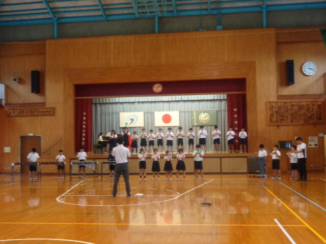 校長室で仕事をしていると、体育館の方から「鉄腕アトムのテーマ曲」が軽快に流れてきました。音楽に惹かれて体育館へ向かうと、11月の天草郡市音楽会に向けて、本校の3・4年生が一生懸命練習している姿がありました。演奏は以前よりも力強くなり、音のまとまりや集団としての一体感も感じられるようになってきました。すばらしい!