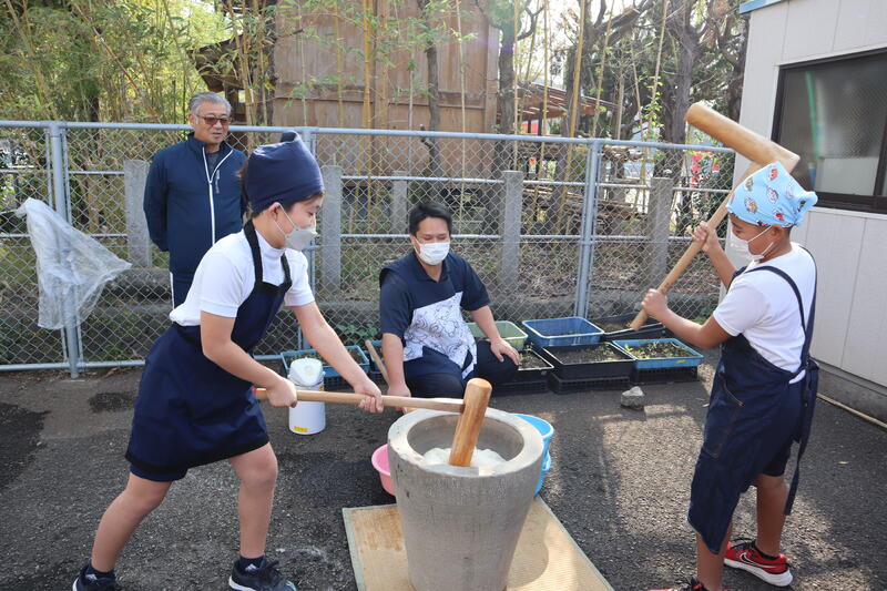 4月19日(土)に植えた餅米を使い、もちつきを行いました。お世話になった山崎様に見守られながら、5年生は感謝の気持ちを込めて楽しくもちつきを体験しました。つきたてのお餅に砂糖醤油をつけて、子どもたちはおいしそうに頬張っていました。こうした貴重な体験ができることは、子どもたちにとって大きな幸せです。