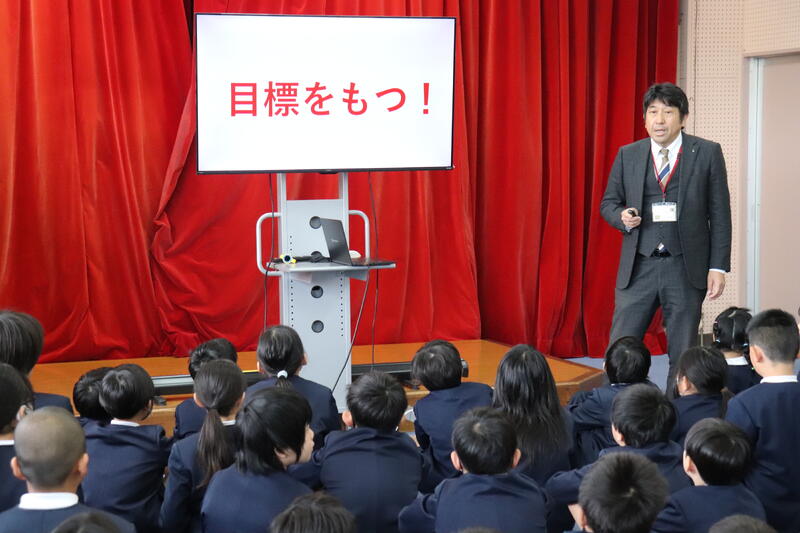 本年は、本校の教育目標である「夢や希望を持ち、目標に向かって実践する子どもの育成」のさらなる充実を目指し、一人ひとりの可能性を伸ばしていきたいと思います。始業式では、「目標を持つ」ということをテーマに話をしました。目標を持ち、挑戦するし続けるような一年になることを願っています。