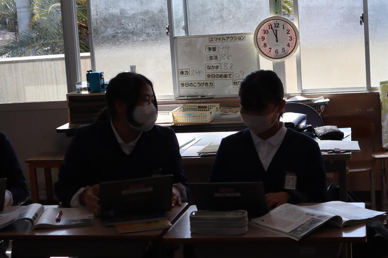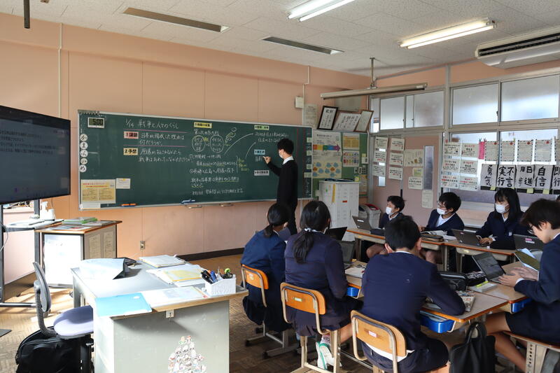 本校では、校内研修のテーマに基づき、2学期までに研究授業を進めてきました。3学期には、これまでの実践を継続・発展させるため、「ちょこっと実践」として、互いの日常授業を参観し合う取り組みを行うこととしています。4時間目には、6年生で社会科の授業が行われました。