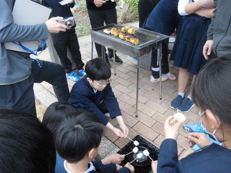 釣りクラブではバーベキューをしており、とうもろこしやイカの香ばしいにおいが漂っていました。3年生は、マシュマロを焼いて食べさせてもらい、嬉しそうに味わっていました。
