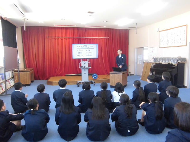 本日は、御所浦駐在所の川越様をお招きし、薬物乱用防止教室を実施しました。